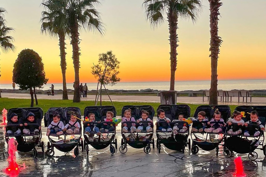 24 yr old, Kristina Ozturk and her millionaire husband Galip, who is 57, live in Batumi, Georgia (the former Soviet country, not the state in America) and have in effect created this situation intentionally by paying surrogates to carry through pregnancy and deliver through birth 21 babies for them. Their babies are Mustafa, 19 months; Mariam, 18 months; Ayrin, 18 months; Alisa, 18 months; Hasan, 17 months; Judi, 17 months; Harper, 16 months; Teresa, 16 months; Huseyin, 16 months and Anna, 15 months. The youngest kids are Isabella, 15 months; Ismail, 14 months; Mehmet, 14 months; Ahmet, 14 months; Ali, 13 months; Kristina, 13 months; Sara, one; Lokman, one; Galip, 11 months; Olivia, nine months and Judy, three months.